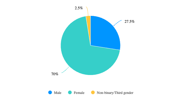 Gender: Female (70%), Male (27.5%), other (2.5%)